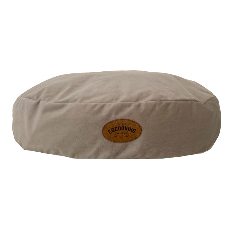 Cama de tamaño pequeño y mediano con diseño ovalado y textura de alta calidad, ideal para el confort de tu mascota, con relleno ecológico hipoalergénico.