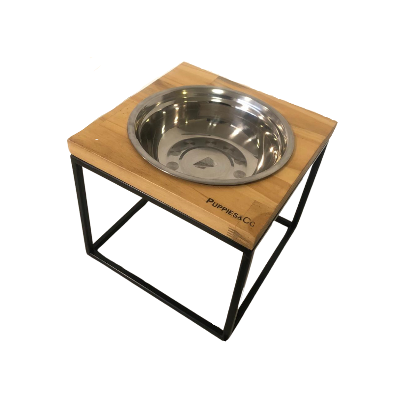 Comedero Individual, con base de Hierro en Altura, con terminación en madera.