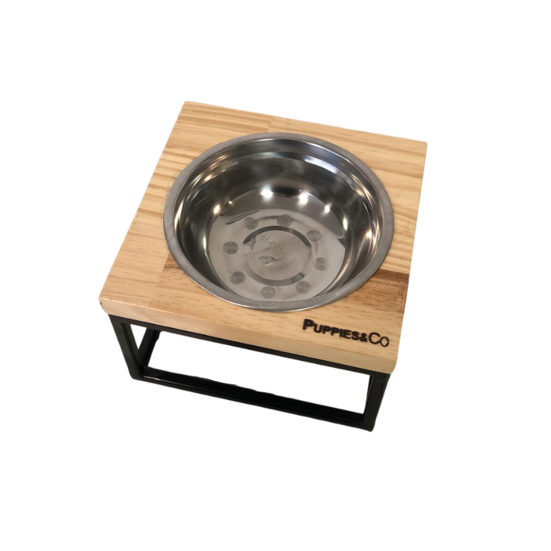 Comedero Individual, con base de Hierro en Altura, con terminación en madera.